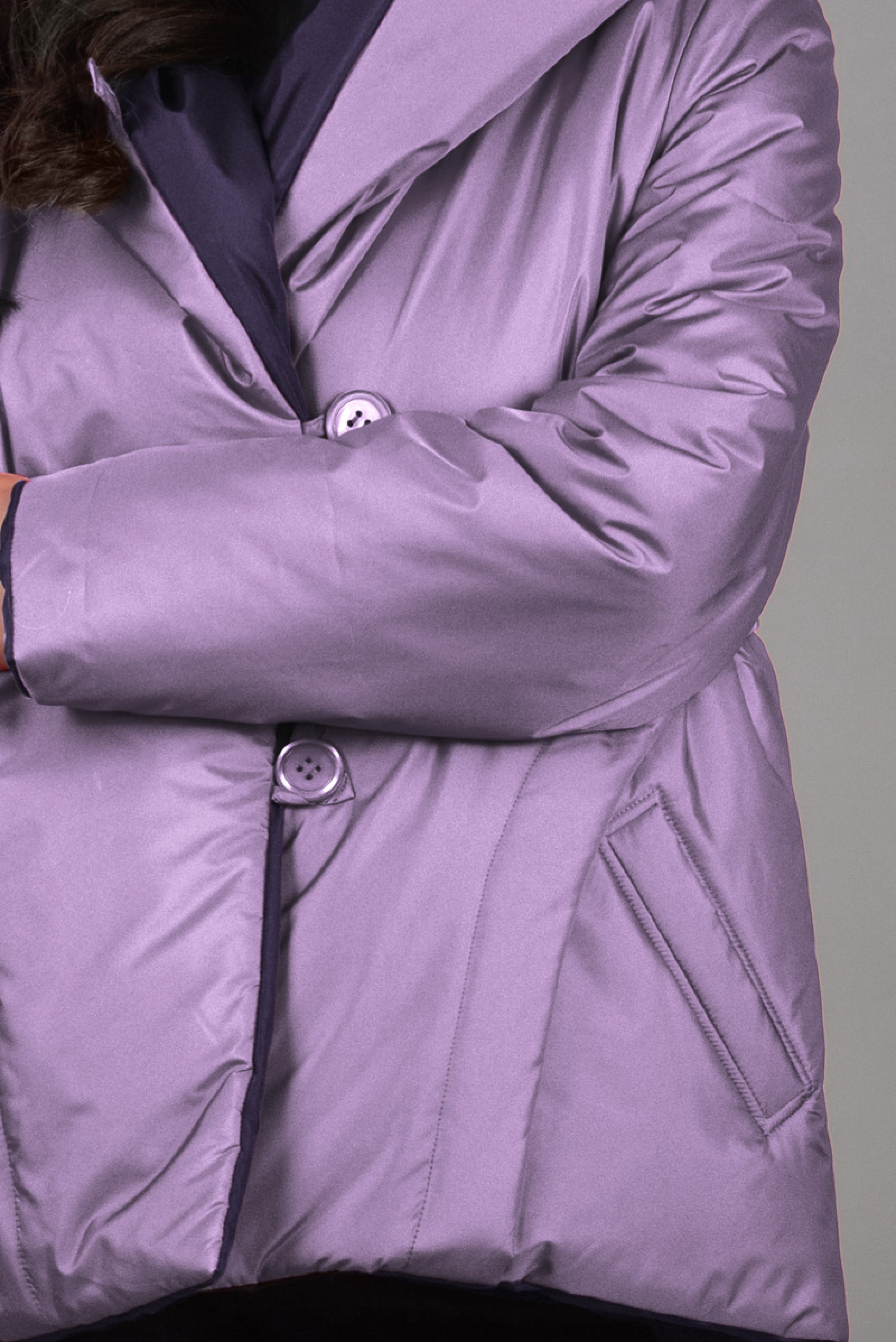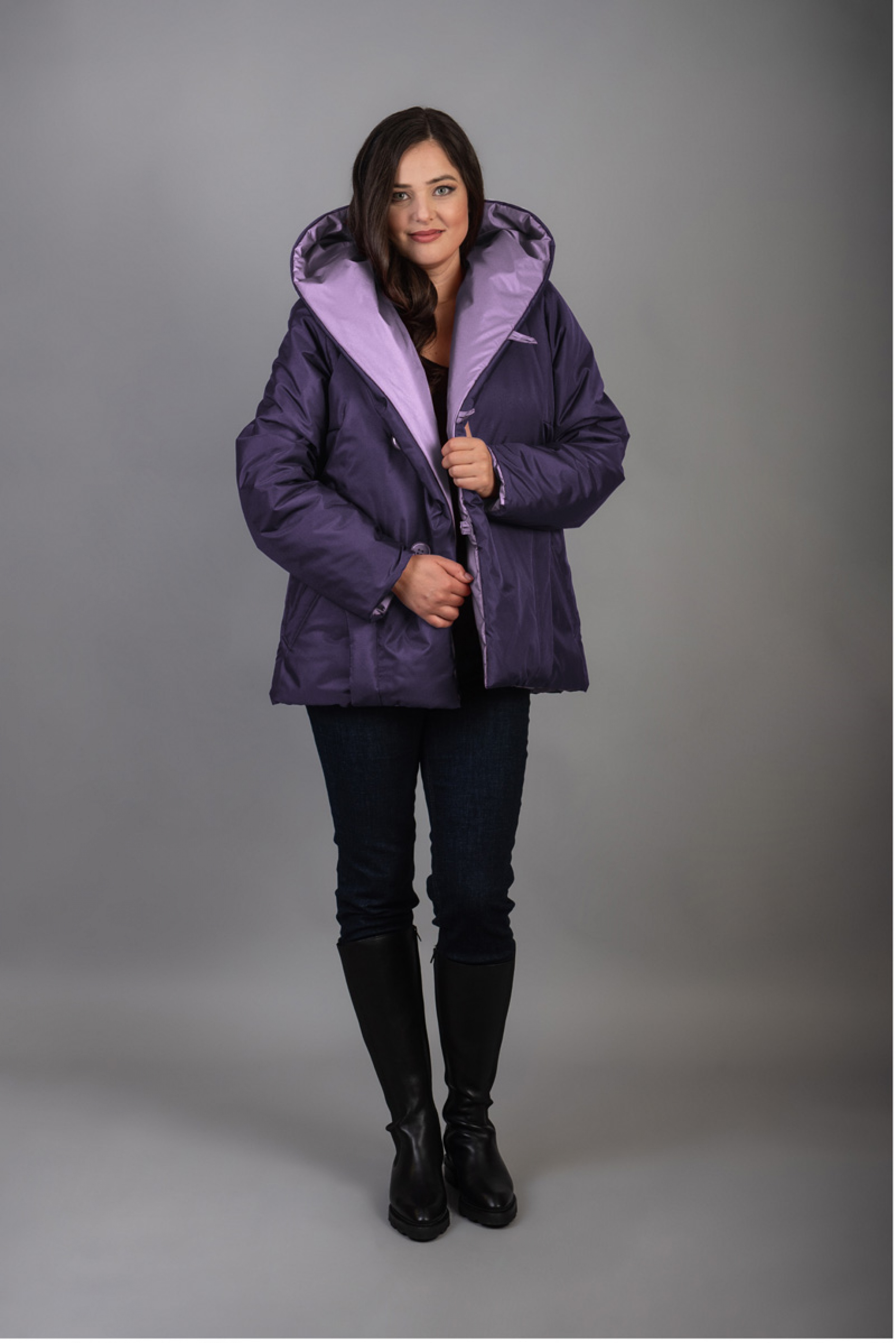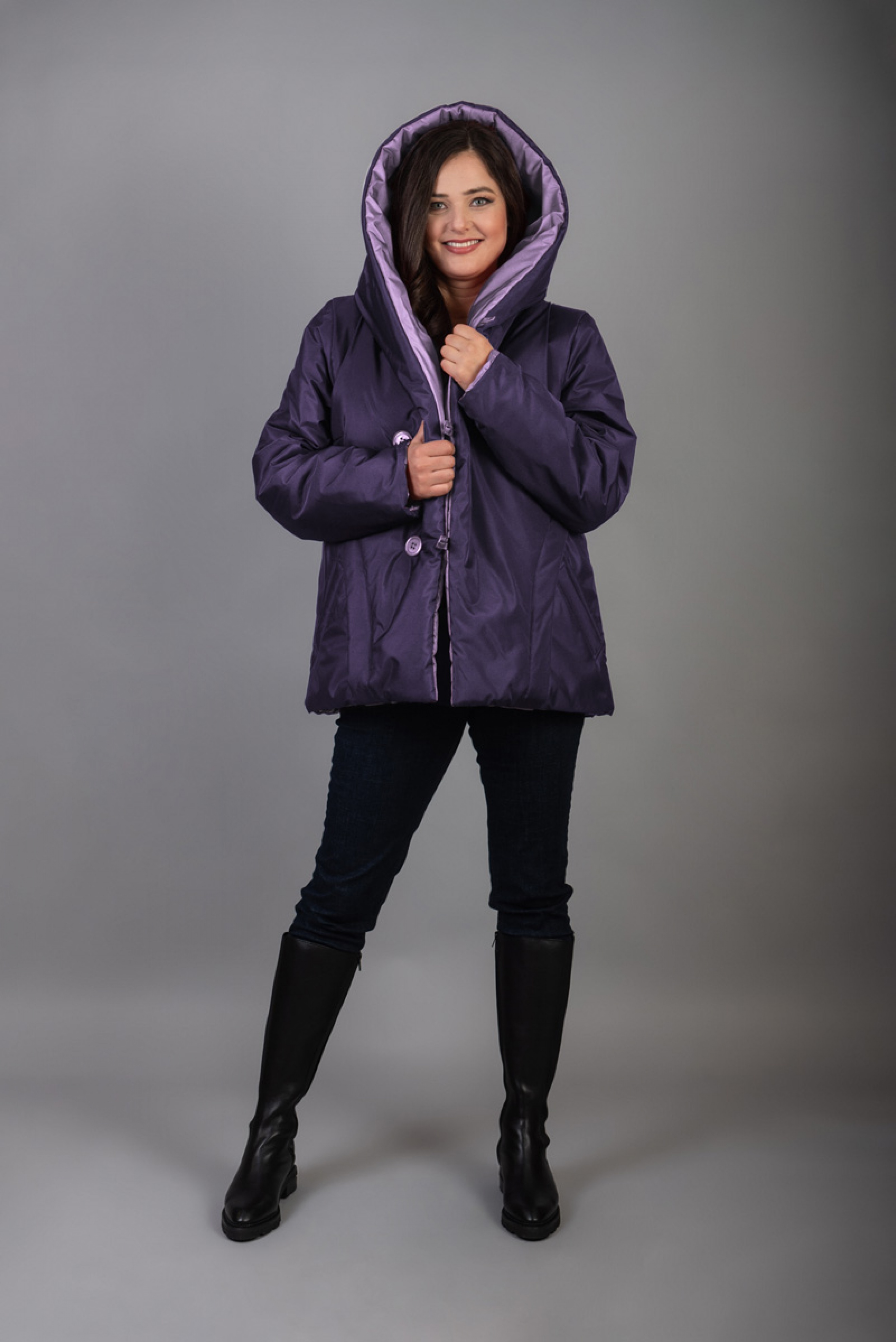 Късо двулицево яке с качулка, джоб-филетка и закачливо уширение в задната част. Спортно-елегантен модел, изработен от висококачествена промазка и полиестрна вата. За дамите, които предпочитат лека и удобна връхна дреха пред дългите тежки пата, това е перфектият избор. Якето ще пази горната част на тялото ви през ветровитите влажни дни на зимата и ще ви топли дори при температури до минус 20 градуса.