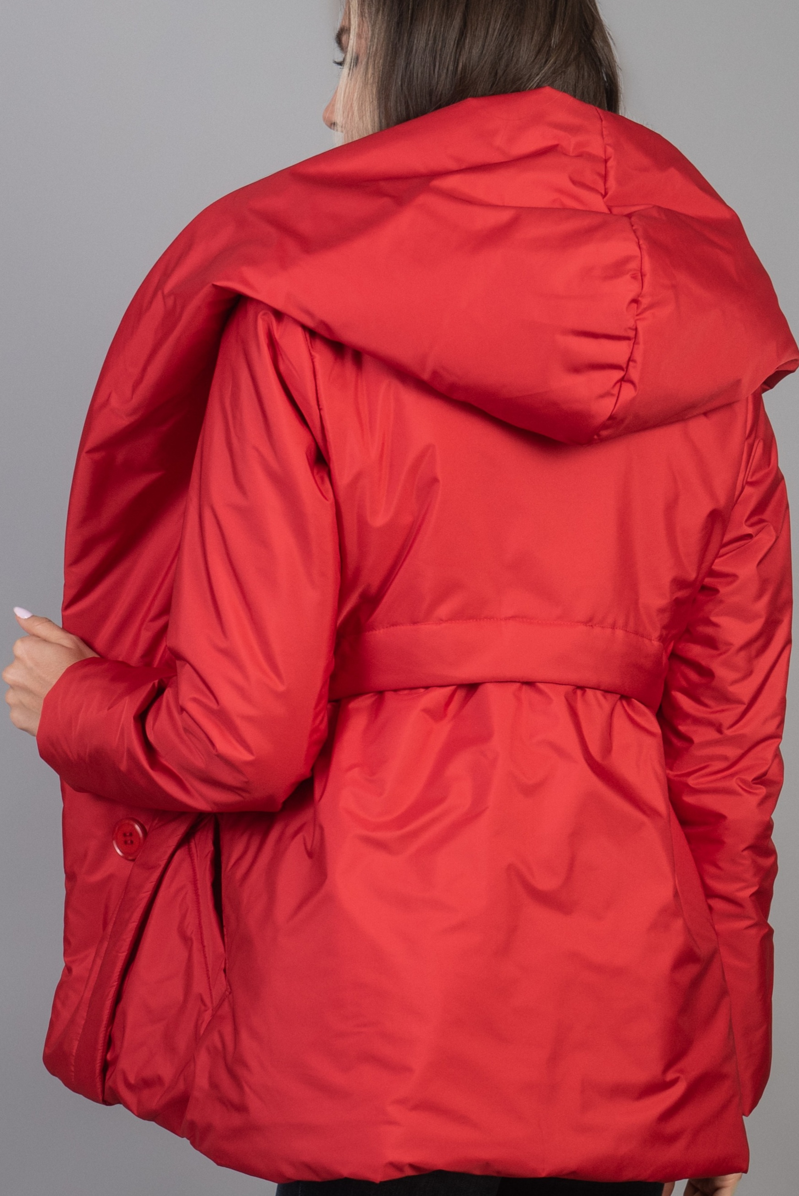Късо двулицев яке с качулка, джоб-филетка и закачливо уширение в задната част. Спортно-елегантен модел, изработен от висококачествена промазка и полиестрна вата. За дамите, които предпочитат лека и удобна връхна дрека пред дългите тежки пата, това е перфектият избор. Якето ще пази горната част на тялото ви през ветровитите влажни дни на зимата и ще ви топли дори при температури до минус 20 градуса.